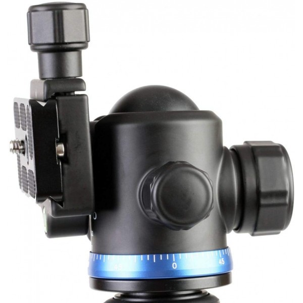 Совместимая с Arca шаровая головка предлагает отдельные ручки регулировки и блокировки, а также панорамирование на 360 ° с градуированной шкалой панорамирования для точного выравнивания изображения. Угол наклона 90 ° облегчает переключение в портретную ориентацию, а пузырьковый уровень помогает убедиться, что они находятся на одном уровне с горизонтом. Он также оснащен встроенным зажимом типа Arca, который закрепляет входящую в комплект быстросъемную площадку 1/4 "-20.