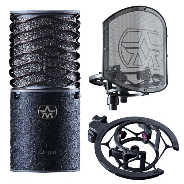 Aston Origin Black Bundle - это комплект из уникально выглядящего высокопроизводительного конденсаторного микрофона с большой диафрагмой Aston Origin и поп-фильтра с амортизатором Aston SwiftShield.
