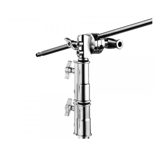 E-Image LCS-02 - си-стенд (студийная стойка журавль) для приборов постоянного света и аксессуаров студийного освещения. В набор включены центральная несущая стойка, горизонтальная стрела длиной 117 см, съемное крепление Grip Head с разными отверстиями и 3 опорные ножки. Си-стенд E-Image LCS-02 рассчитан на нагрузку до 20 кг. Рабочий диапазон высот стойки варьируется от 1,12 м до 2,12 м. Благодаря низкому центру тяжести стойка журавль E-Image LCS-02 имеет хорошую устойчивость, что дает возможность устанавливать тяжелые панели освещения и сборки из нескольких приборов, не боясь опрокидывания. Эргономичная «T»-образная конструкция рукоятки крепления E-image Grip Arm обеспечивает максимальный крутящий момент. Продуманный дизайн опорной части си-стенда E-Image LCS-02 позволяет фиксировать ножки под любым углом, что дает возможность размещать эту стойку в местах, недоступных для обычных стоек для студийного освещения. Си-стенд (стойка журавль) E-Image LCS-02 будет пользоваться спросом среди профессиональных фотографов, кинематографистов и видеомейкеров.